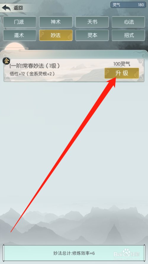 点击进级按钮,进级功法