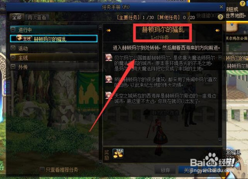 第一步,点击右上角的“郝顿玛尔的骚乱”使命打开使命栏