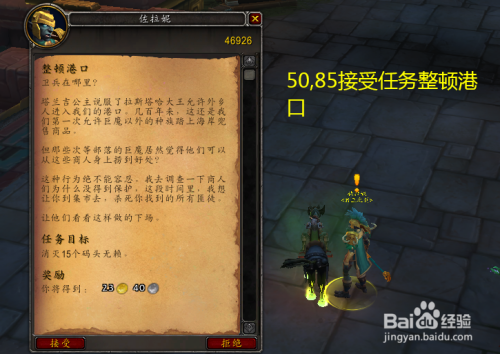 第一步,移动到祖达萨赞达拉帝国,在(50,85)找到佐拉妮接管使命整顿口岸。