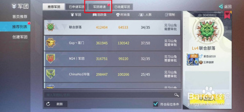 在保举列表的本家儿页面中,我们点击进入军团邀请。