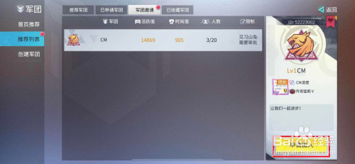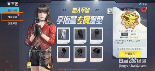 在军团的本家儿页面中,我们点击进入保举列表选项。
