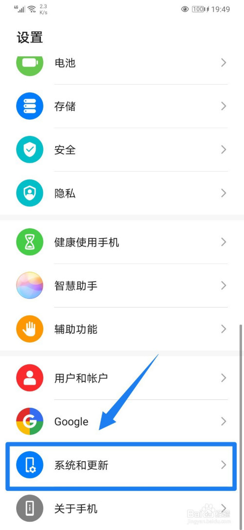 回到设置,点击系统和更新