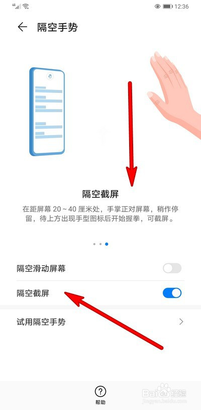 开启隔空截屏功能,在游戏里面利用隔白手势截屏可以快速截屏。