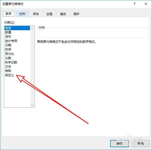 这时会打开设置单位格格局的窗口,点击左侧的自界说菜单。