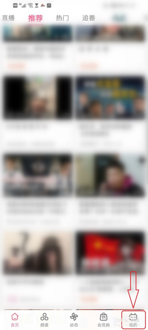 打开哔哩哔哩首页,点击右下角【我的】。
