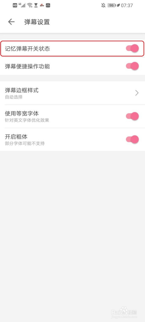 “记忆弹幕开关状况”开启,设置完当作。