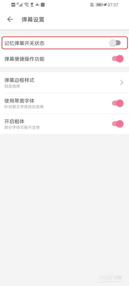 点击“记忆弹幕开关状况”右侧的开关。