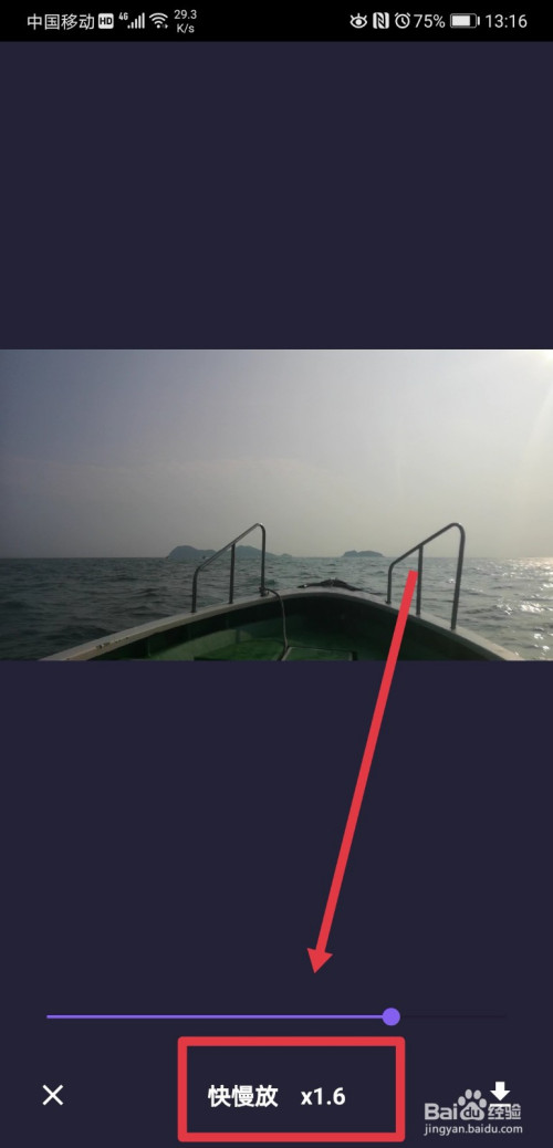 选择好视频后,在底部拉动调整速度的进度条,往右是快播放,左是慢播放;
