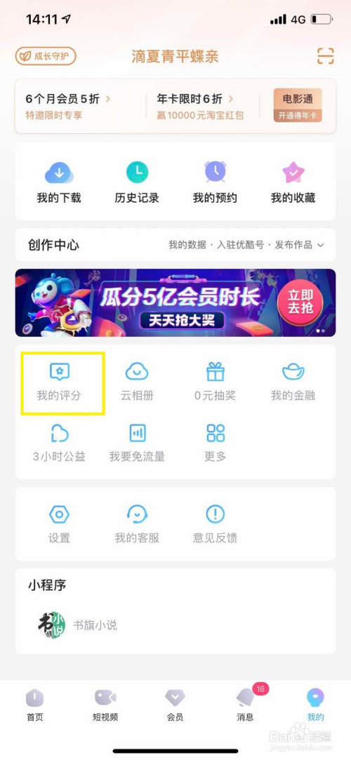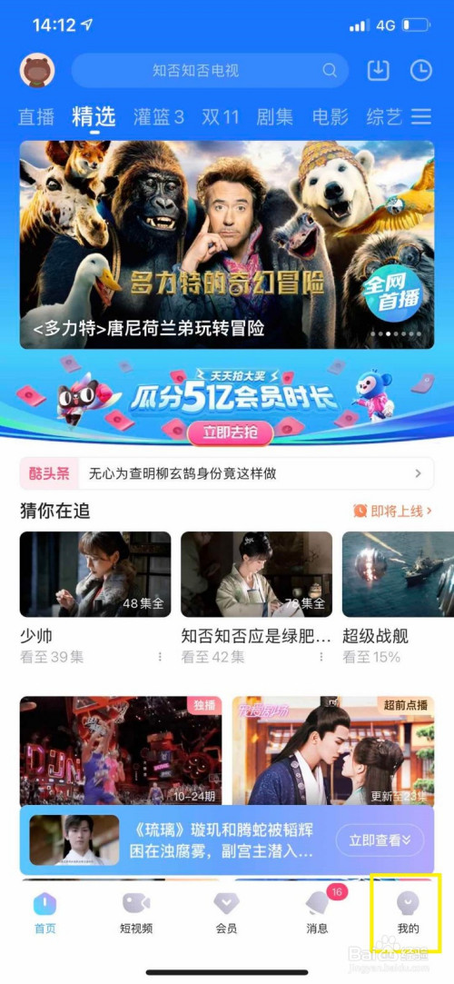 进入到优酷的本家儿页面后,点击右下角我的选项。