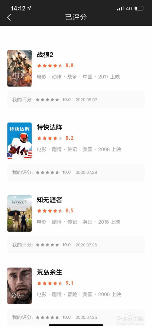 在我的评分本家儿页面中,点击进入右上角已评分选项。