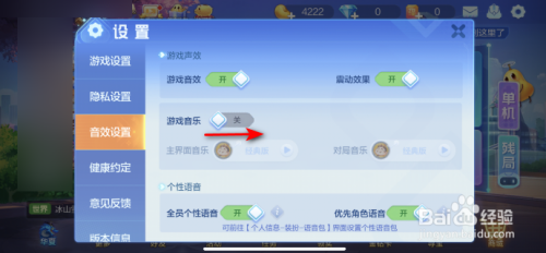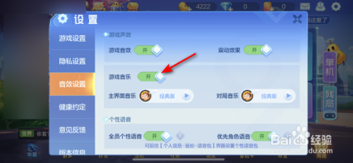 然后将游戏音乐的滑动按钮标的目的右滑动。