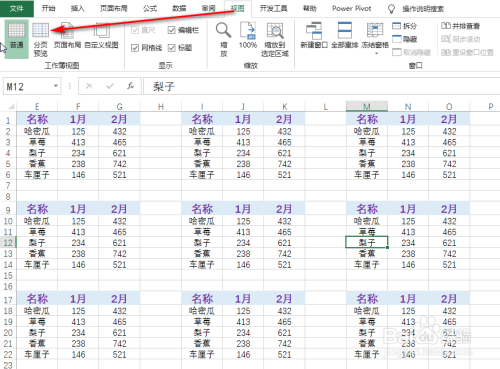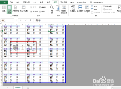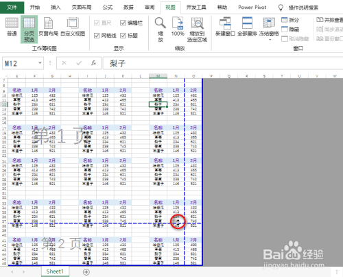 接着,在“视图”选项卡下点击“分页预览”,具体如图所示: