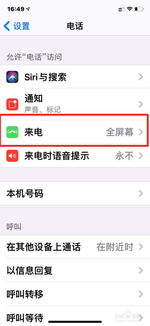 德律风再拨入时就以全屏的形式闪现