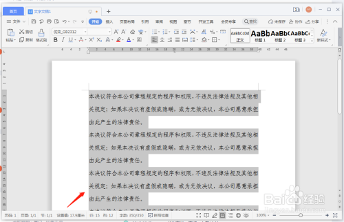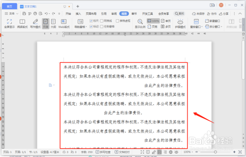 WPS打开word文档,选中文档的文字。