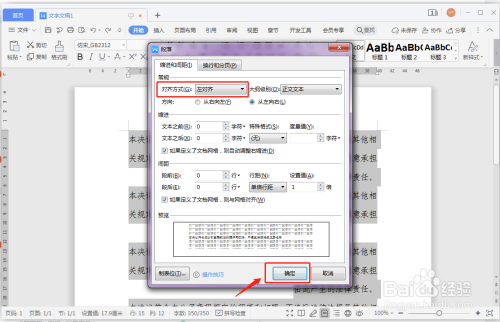设置对齐体例后,再点击“确定”。