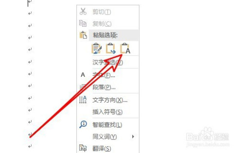 或者我们在粘贴的时辰,点击右下角的粘贴选项按钮,点击只粘贴文字的图标也可以。