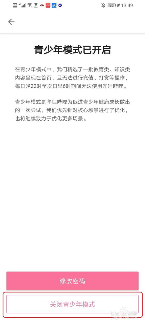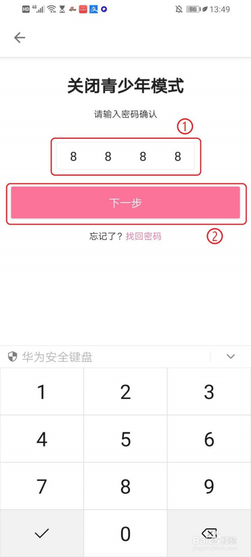 输入密码,然后点击【下一步】,即可封闭青少年模式。
