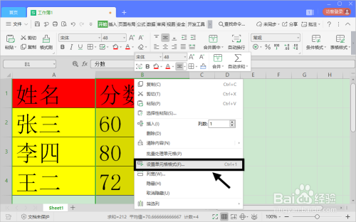 选中后按鼠标右键,在菜单中选择“设置单位格格局”。
