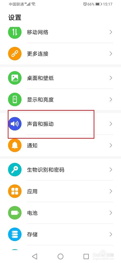 第二步进去华为手机设置之后,点击声音和振动
