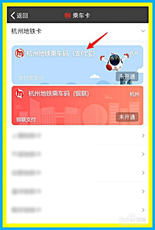 进入到本家儿页面后,选中搭车卡,然后选择杭州地铁搭车码进入。