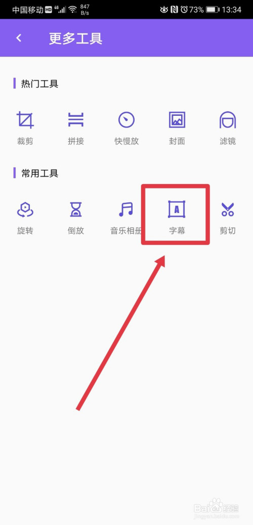 在更多东西页面,找到字幕功能,点击进入;