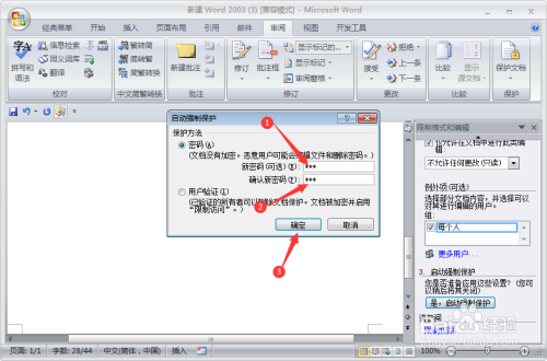 选择密码庇护,输入密码,确认密码,点击确定,如图所示: