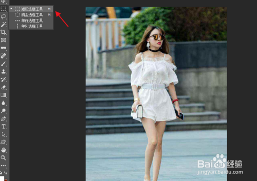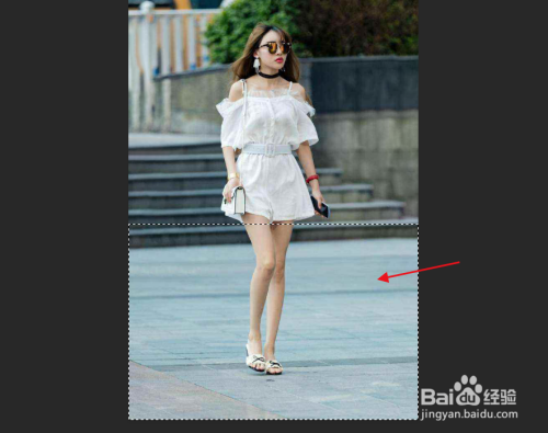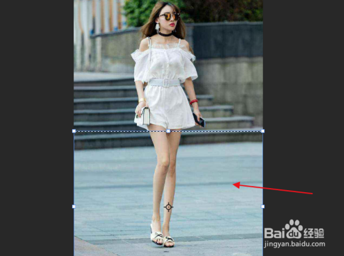 利用矩形选框东西将人物的腿部区域框选出来。