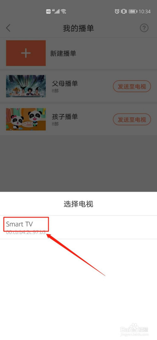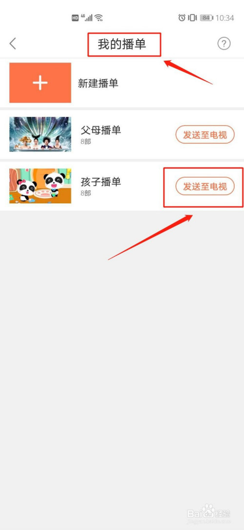 接着选择我的播放列表,点击(孩子播单)“发送至电视”。