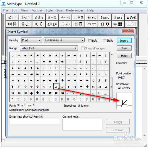 在弹出的对话框中,将“查看”设置为“字体”以及“Wing dings 3”,其他连结默认,具体如图所示: