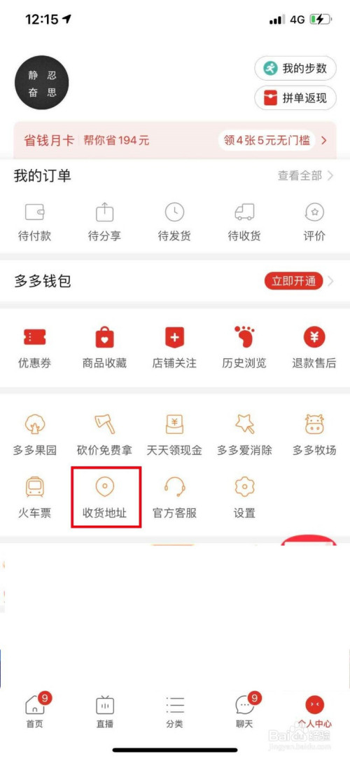 在小我中间的本家儿页面中,我们点击进入收货地址选项。