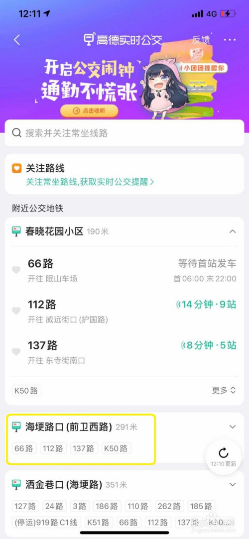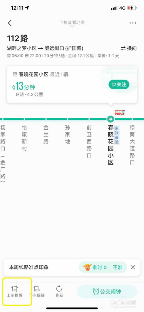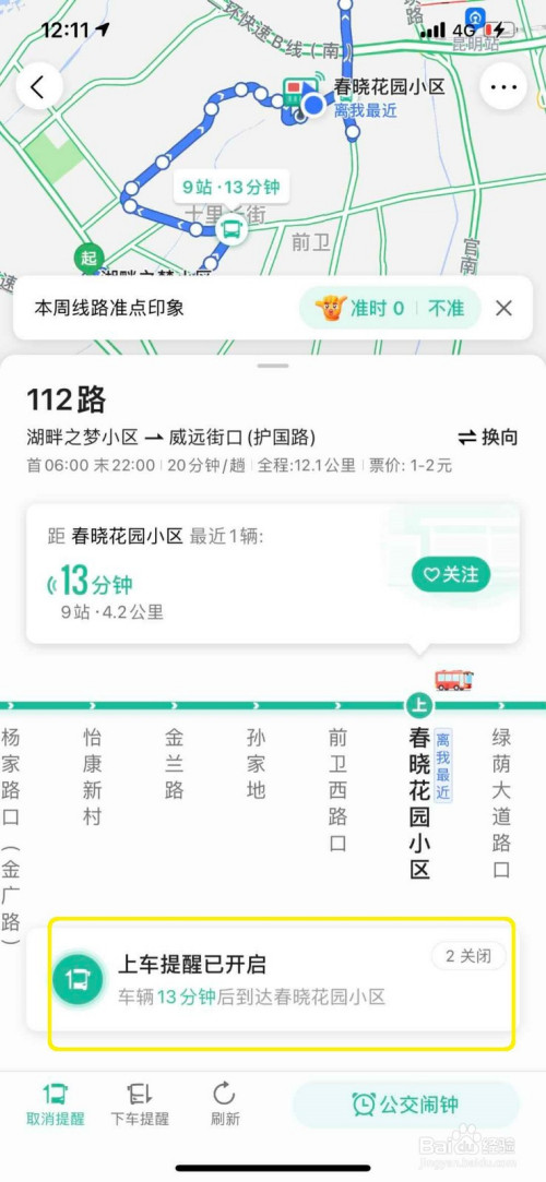 如图,这时就可以看到具体的公交线路,我们还可以开启动静提醒。