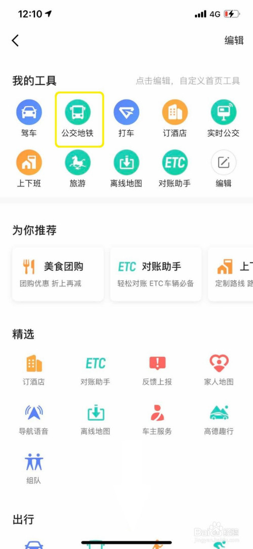 在更多的本家儿页面中,我们点击进入公交地铁选项。