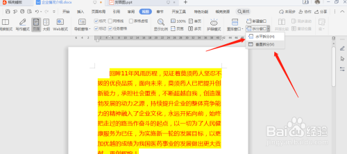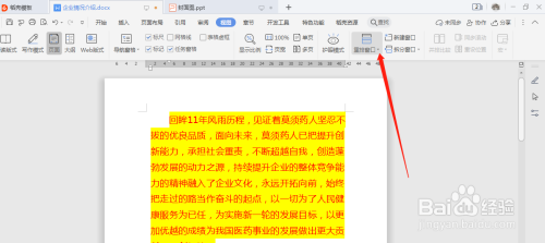 对文档的窗口进行设置,点击拆分窗口的小箭头。