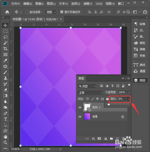 最后,我们在图层里,把外形的图层填充调整为【8%】就完当作了,如图所示。
