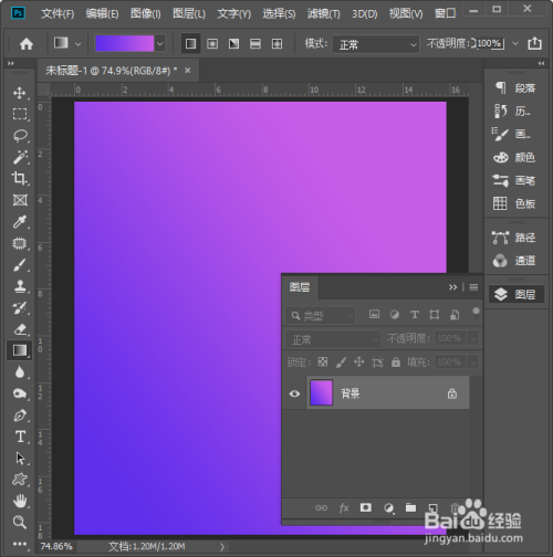 接着,我们给布景填充上渐变颜色,渐变偏向是从左下角到右上角,如图所示。