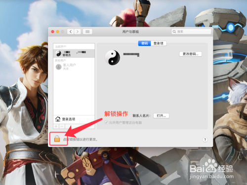 在【系统偏好设置】中,点击【锁】图标解锁,如图所示。