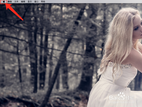 在桌面左上角,点击【苹果】图标,如图所示。