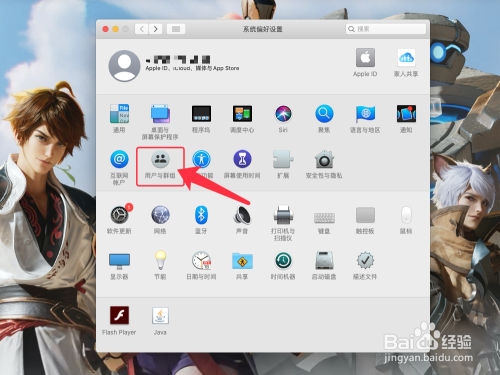 在【系统偏好设置】中,点击【用户与群组】,如图所示。