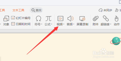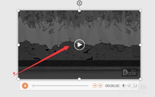 视频插入完当作之后就会在幻灯片中显示,点击即可播放。