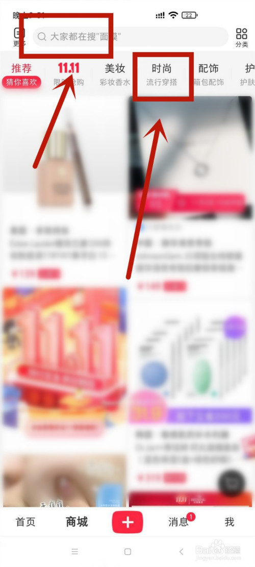 点击时尚或者直接点击页面最上方的输入栏直接搜刮衣服。