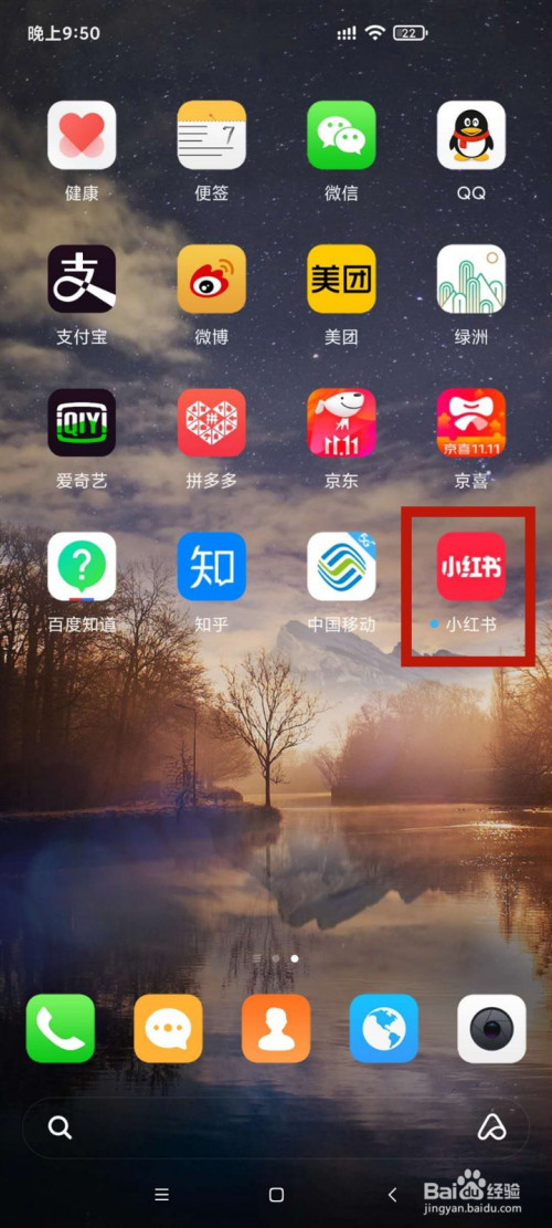 叫醒手机系统后,点击进入小红书App。