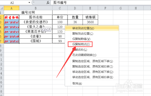 拖动鼠标右击移动到要复制格局的列。