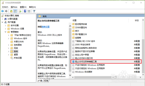双击窗口右侧的【阻止拜候注册表编纂东西】。