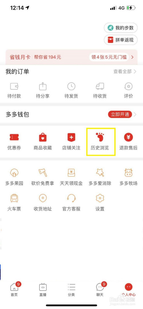 在小我中间的本家儿页面中,我们点击进入汗青浏览选项。