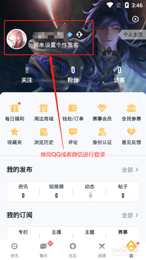 1、打开手机上的王者营地APP,登录好本身的账号;利用QQ账号或者微旌旗灯号进行登录即可