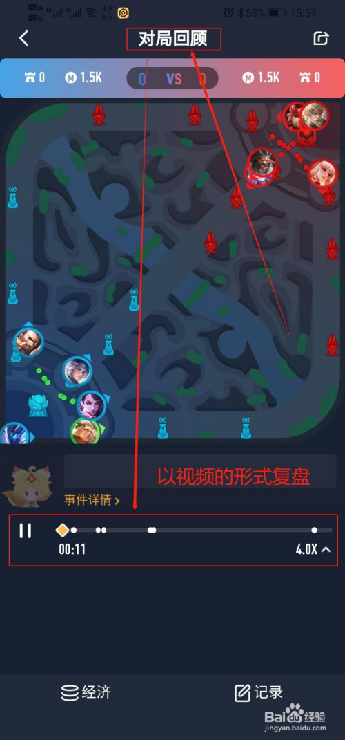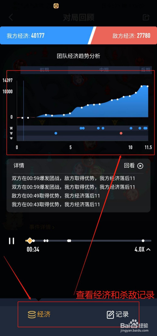 6、在复盘的时辰,还可以点击底部的“经济”和“记实”按钮,进行加倍具体的阐发进修哦