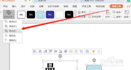 这样文字就可以分为多个部门,用鼠标拖动就可以实现拆分结果了。