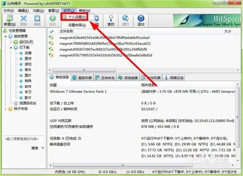 打开比特精灵来到本家儿界面,点击【选项】选项卡