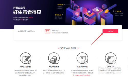 弹出认证页面中,会提醒认证费用和大致流程,再点击“开启认证”进入。