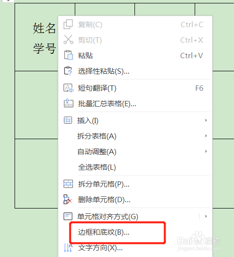 然后鼠标点击该单位格,右击选择边框和底纹。